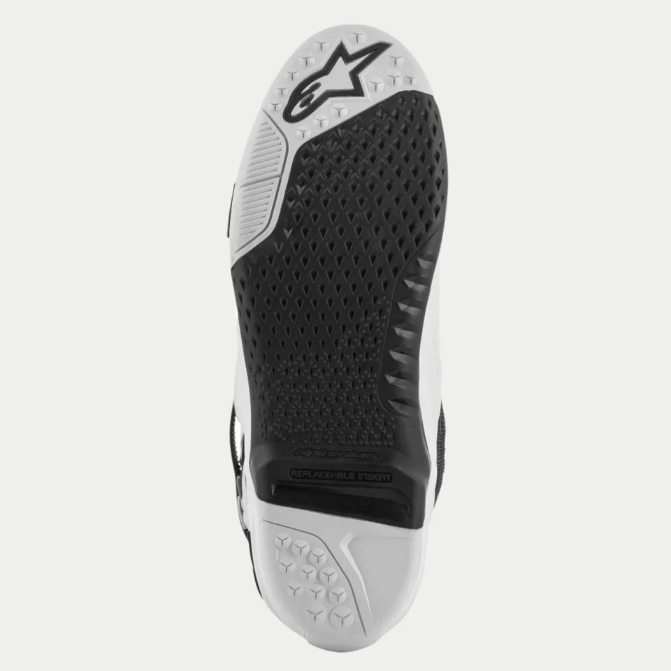 A bota tem uma flexibilidade incrível graças à Frontal Flex Frame (zona flexível patenteada pela Alpinestars), que combina placas de ligação frontais e traseiras, desde o pé até à canela, um sistema de ligação com TPU de duas densidades entre as fivelas e o exterior da bota, e é complementada por um sistema de duplo pivot que elimina a necessidade de ter várias barras de torsão. A Frontal Flex Frame move-se facilmente entre a parte superior e inferior da bota, prevenindo compressão excessiva e distensões.