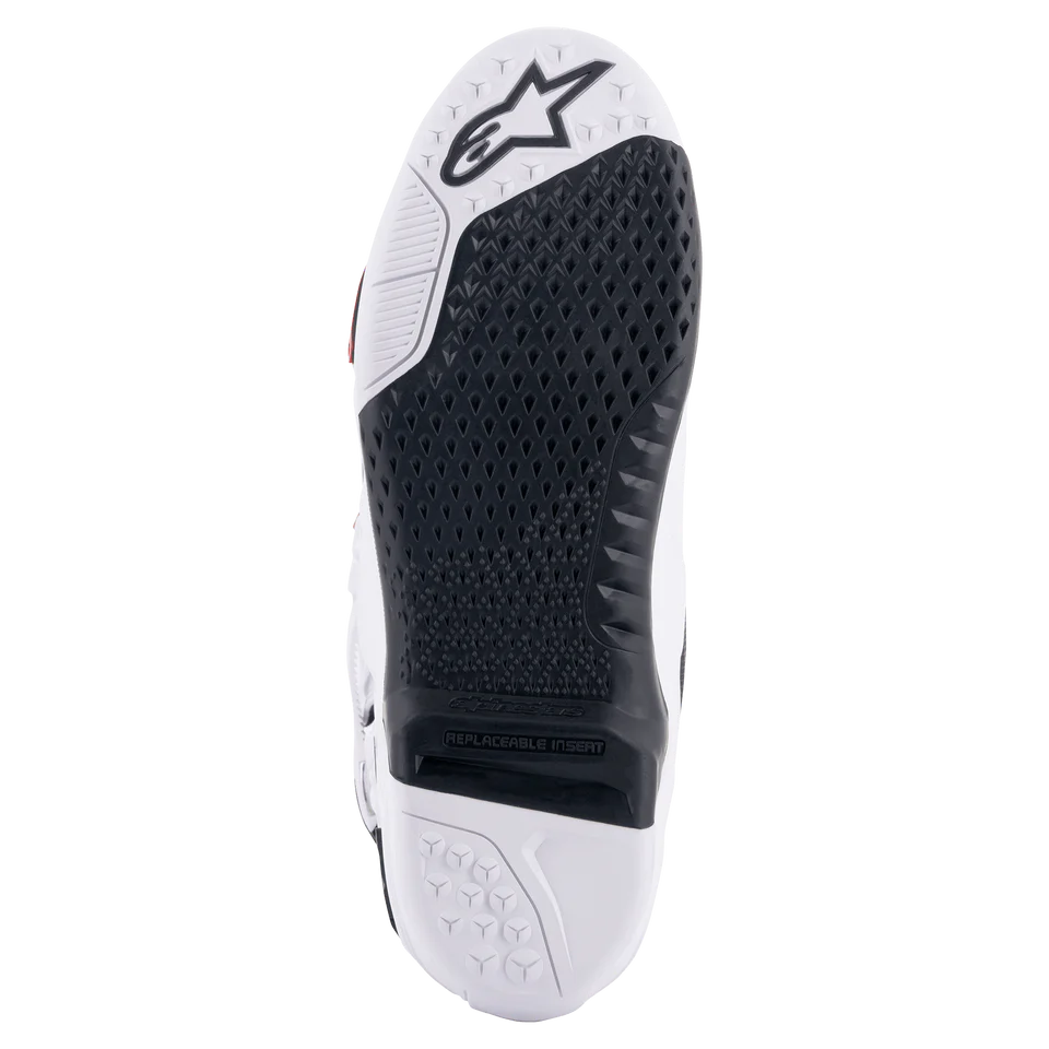 A bota tem uma flexibilidade incrível graças à Frontal Flex Frame (zona flexível patenteada pela Alpinestars), que combina placas de ligação frontais e traseiras, desde o pé até à canela, um sistema de ligação com TPU de duas densidades entre as fivelas e o exterior da bota, e é complementada por um sistema de duplo pivot que elimina a necessidade de ter várias barras de torsão. A Frontal Flex Frame move-se facilmente entre a parte superior e inferior da bota, prevenindo compressão excessiva e distensões.