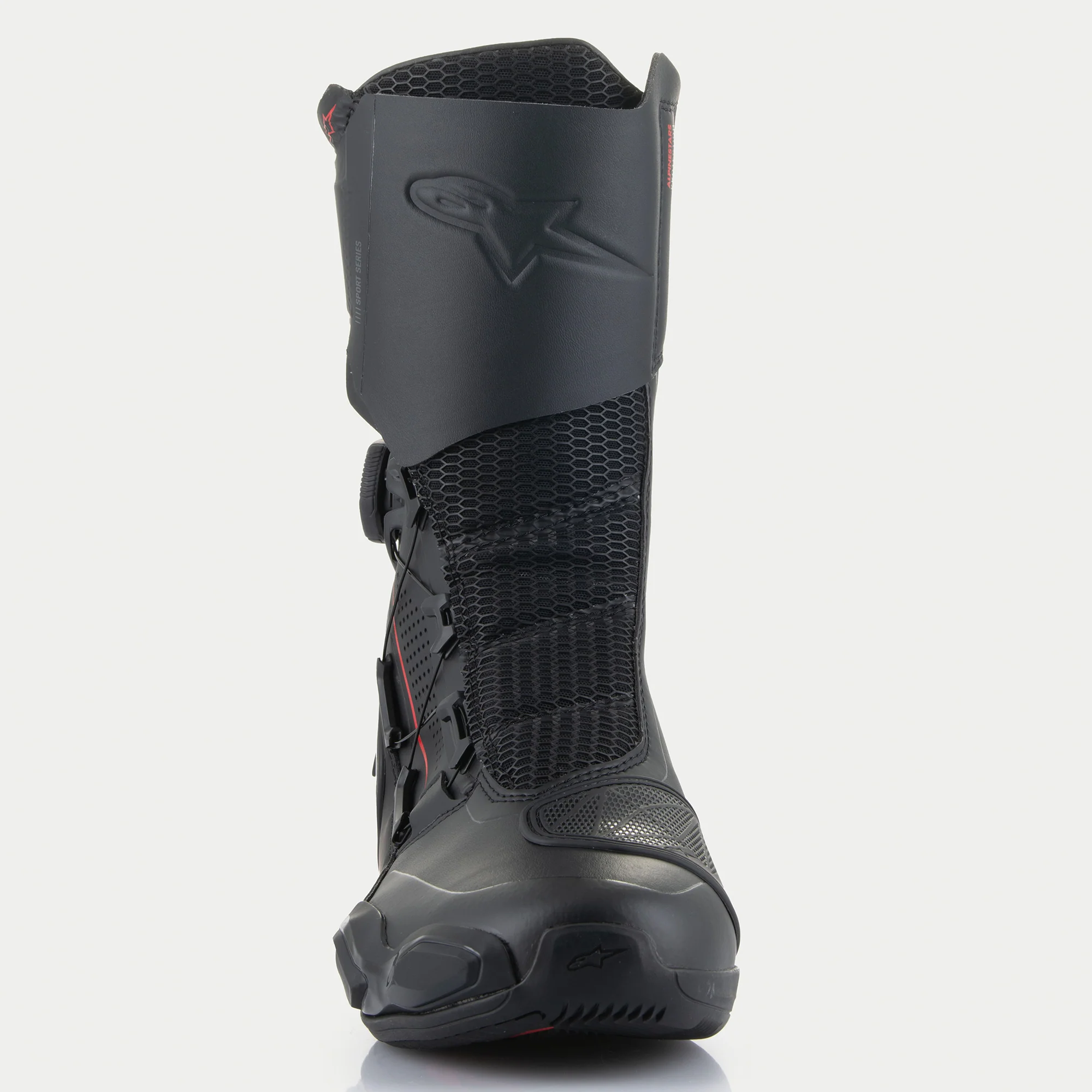 As Botas SP-X BOA são um elegante calçado desportivo projetado para caber por baixo de calças de pilotagem técnicas e proporcionar uma capacidade superior de caminhar. Otimizadas para pilotos de desporto e de turismo desportivo, as Botas SP-X BOA são botas compactas de altura média com níveis premium de proteção e conforto tanto na mota como fora dela. A parte superior é construída a partir de uma combinação de microfibra avançada, material ultra suave Rideknit® e malha tricotada, além de partes termo-soldadas sem costuras. A parte inferior apresenta um contraforte TPU, protetor do dedo do pé e o Alpinestars TPF Transversal Protection Frame na sola, permitindo níveis elevados de proteção contra impactos e qualquer flexão ou torção. Além disso, a sola também apresenta um design totalmente novo com um calcanhar traseiro assimétrico para facilitar a passada natural do piloto e promover estabilidade fora da mota.